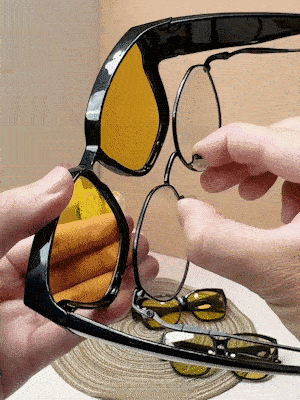 Experience clearer, more comfortable vision after dark. These night driving glasses are specially designed for prescription glasses wearers, reducing glare and enhancing visibility in low-light conditions.Night Vision Driving Glasses Fit Over Existing Eyewear