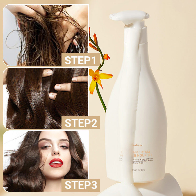 STYLING A VÝŽIVA: Náš krém na kudrlinky vám nejen pomůže s úpravou kudrlin, ale také je vyživí pro dlouhotrvající zdraví a vitalitu.