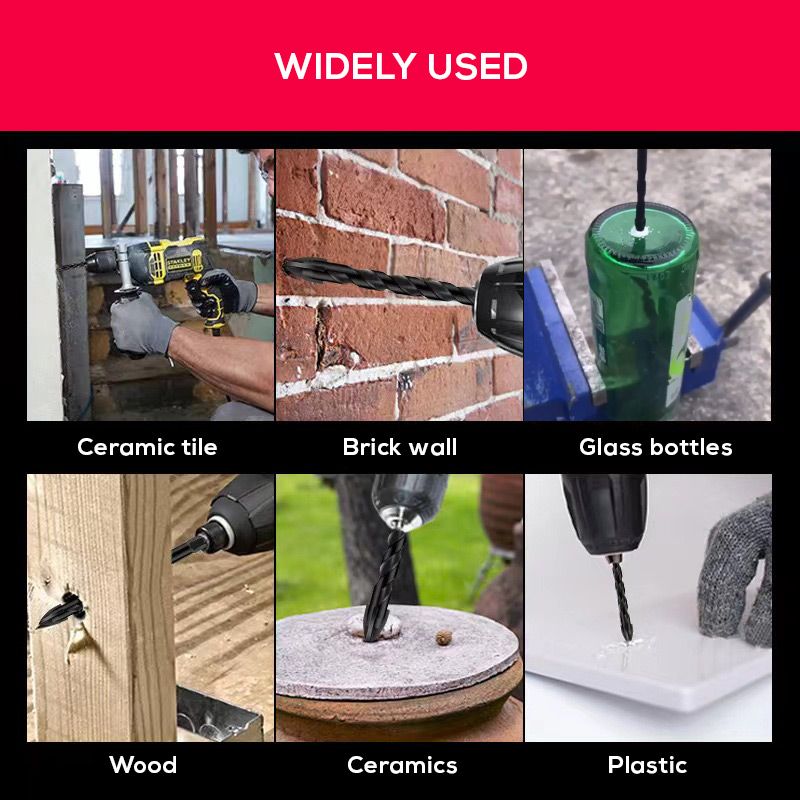 Matériau durable : Fabriqué en acier à haute dureté, robuste, antirouille, résistant à l'usure, résistant à la corrosion et durable. Percez plus vite : Conception à 4 arêtes vives, pour un perçage plus rapide et plus précis, améliorant ainsi l'efficacité du travail. Compatibilité: Tige hexagonale universelle, compatible avec la plupart des perceuses électriques, perceuses à main, perceuses au lithium, etc. Large application : Largement utilisé pour le perçage de carreaux de céramique, de briques vitrifiées, de verre, de béton, de métal, de bois et pour d'autres applications.