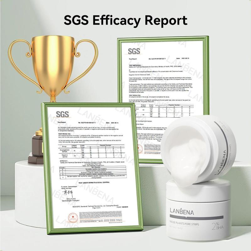 ✨ 2.0 Salicylic Acid Blackhead Removal Mask ✨ LANBENA Nose Pore Strips version 2.0 features Salicylic Acid, Amazonian White Clay, and other ingredients. These soften the stratum corneum and enhance adsorption. It effectively removes stubborn blackheads, dirt, whiteheads, and oil in just 8~15 minutes. Ensure the cream dries before removal for optimal results.