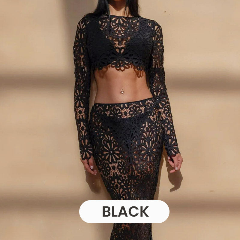 ȚINUTĂ VERSATILĂ DIN 2 PIESE: Acest set include un top și o fustă din dantelă asortate, permițându-vă să creați fără efort un look elegant și uniform. Potrivit pentru o varietate de ocazii, de la evenimente de seară la petreceri formale.